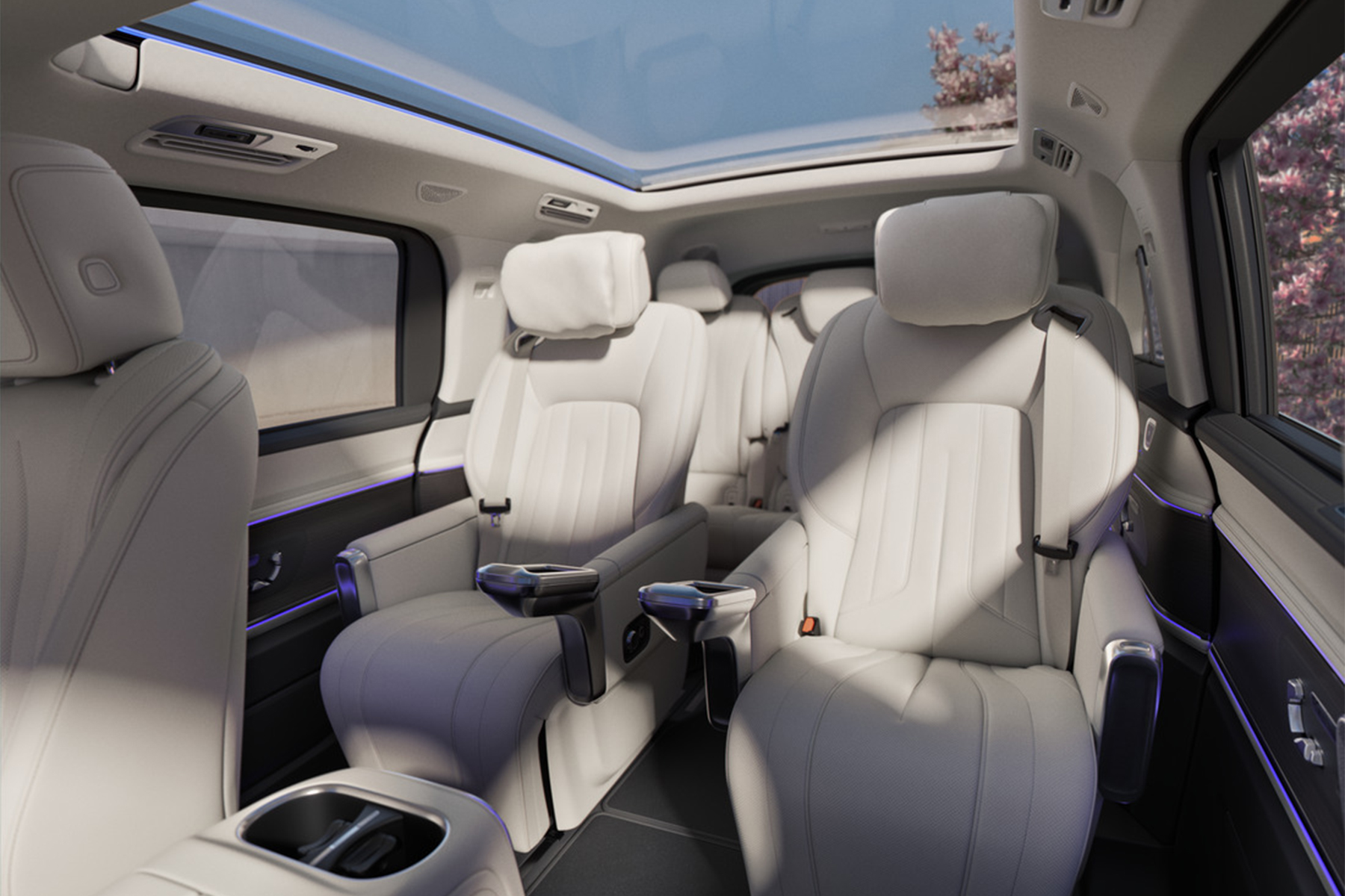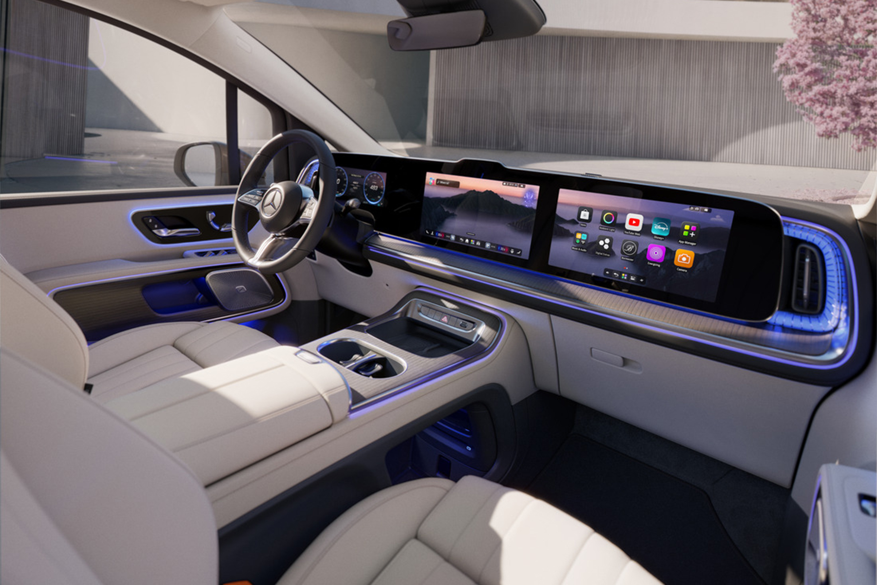 Zodra je instapt, ervaar je een open en verfijnde cabine die ontworpen is voor maximaal comfort voor elke passagier. Hoogwaardige materialen zoals premium leder en zorgvuldig afgewerkte details zorgen voor een exclusieve uitstraling. De ergonomische stoelen bieden uitzonderlijke ondersteuning, zelfs tijdens langere ritten. Grote digitale MBUX display en een strak vormgegeven dashboard creëren een moderne en intuïtieve rijervaring. Achterin tilt de optionele MBUX Rear Space Experience het comfort naar een hoger niveau. Dit geavanceerde systeem biedt passagiers een persoonlijke entertainmentomgeving met grote schermen, multimedia en slimme bediening. Dankzij de royale ruimte en slimme opbergmogelijkheden geniet iedereen van een ontspannen reis.